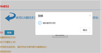 请检查ca密码是否正确,且浏览器是否开启了阻止弹窗。模拟解密成功后最好在该电脑进行开标解密,尽量保持标书的加解密在同一台电脑上进行。(设置教程点击下方链接)
